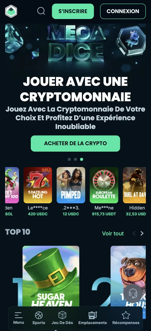 Notre site mobile est le moyen officiel de jouer sur téléphone ou tablette. Ouvrez votre navigateur, allez sur notre site et effectuez la connexion MegaDice pour accéder aux jeux et à la caisse. Pour un accès plus rapide, vous pouvez enregistrer un raccourci afin qu’il s’ouvre comme une icône légère de application mobile MegaDice.